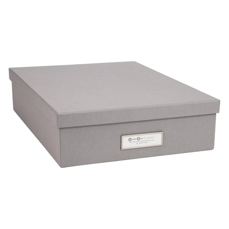 Bigso Oskar är en förvaringslåda tillverkad av tjockare återvunnen papp. Snygg och stilren låda med lock som passar lika bra på kontoret som hemma, där du vill ha ordning och reda. Med denna byrå kan du lätt hålla ordning på dina viktiga papper och även andra små prylar. Mått 35x26x8,5cm. Kan kombineras med andra produkter i samma serie.