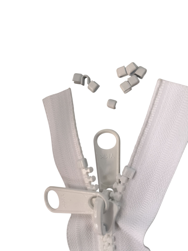 Detta vita dragkedjestopp från YKK är avsett för 10 mm dragkedjor och används för att säkra dragkedjans övre del. Perfekt när du vill laga, korta eller anpassa en dragkedja på exempelvis jackor, väskor, båtkapell eller dynor.