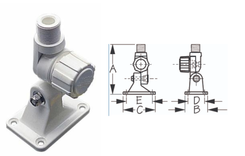 Justerbar antennfot – UV-beständig nylon, 1"-14 gänga, marin kvalitet