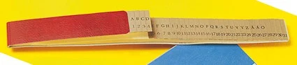 Långsmal sorterare med bottenplatta av konstläderpapp och vävförstärkta flikar. Index 1-31 och A-Ö. 650 x 65 mm