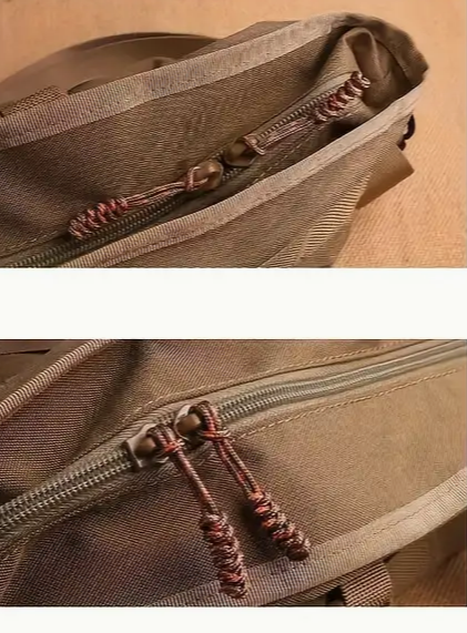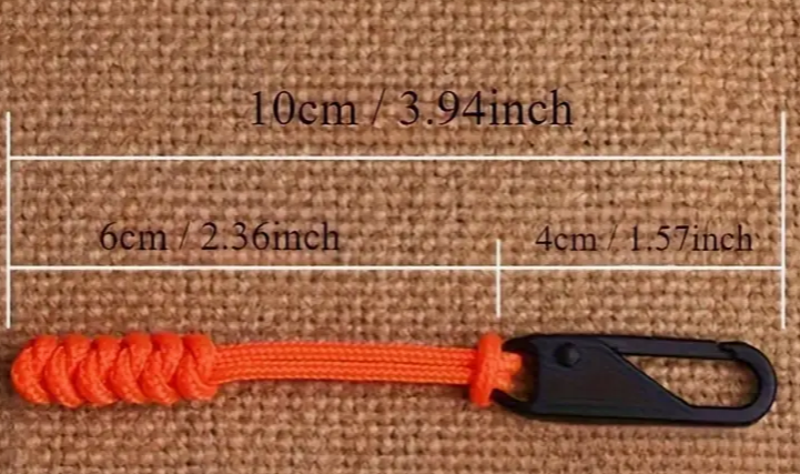 aracord-dragkedjor med slitstark polyesterkärna och metallblixtlåsreglage.