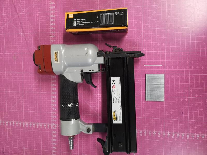 Välbalanserad och lättarbetad spikpistol med gummiklätt handtag och svartlackerat magasin.